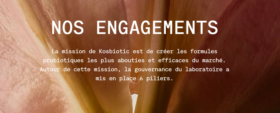 Les consommateurs deviennent exigeants en matière de bénéfice, mais aussi de traçabilité des ingrédients des compléments alimentaires. Pour répondre à ces attentes, Kosbiotic sélectionne rigoureusement ses fournisseurs, excluant le dioxyde de titane. Elle fait aussi analyser chacun de ses lots de produits par des laboratoires indépendants.